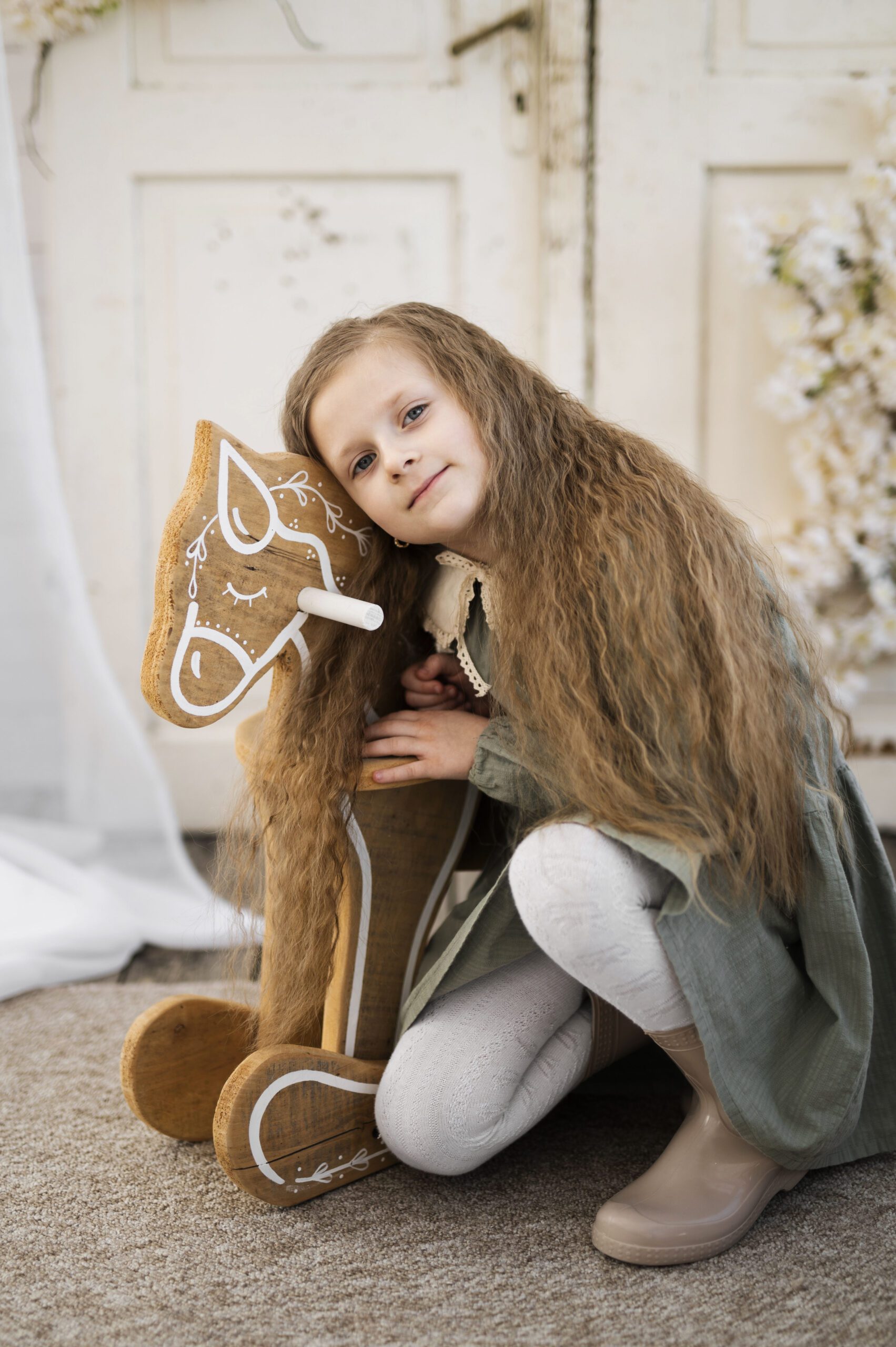 Das Pferd ist kein Spielzeug, sondern eine Requisite für Fotoshootings, die nur unter Aufsicht von Erwachsenen verwendet werden darf!